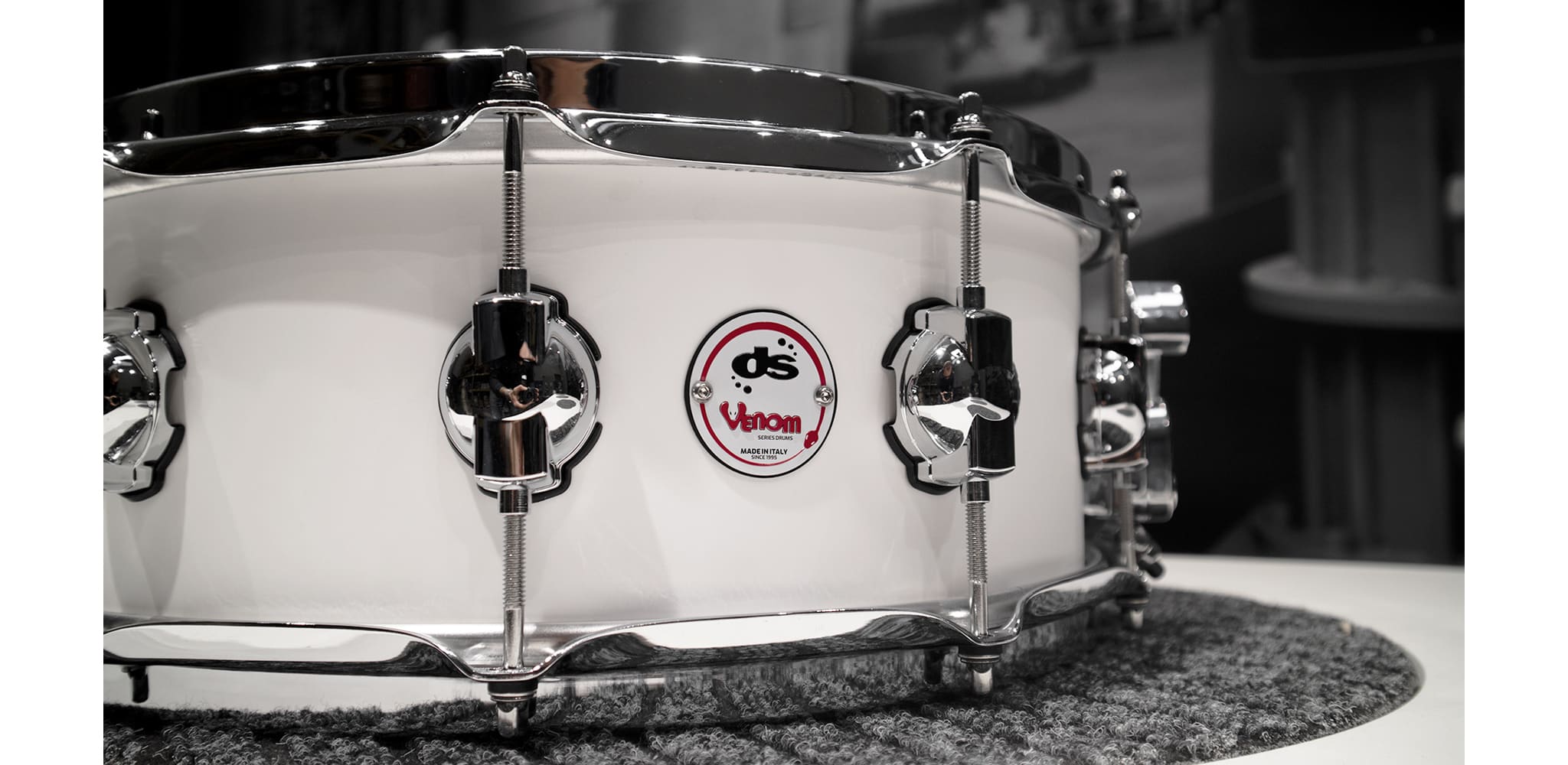 DSVE1455SNWP – Trống Snare Venom 14×5.5″ Snow White DS Drum giúp từng nhát đánh trở nên nổi bật, dễ xuyên qua tổng thể ban nhạc. -