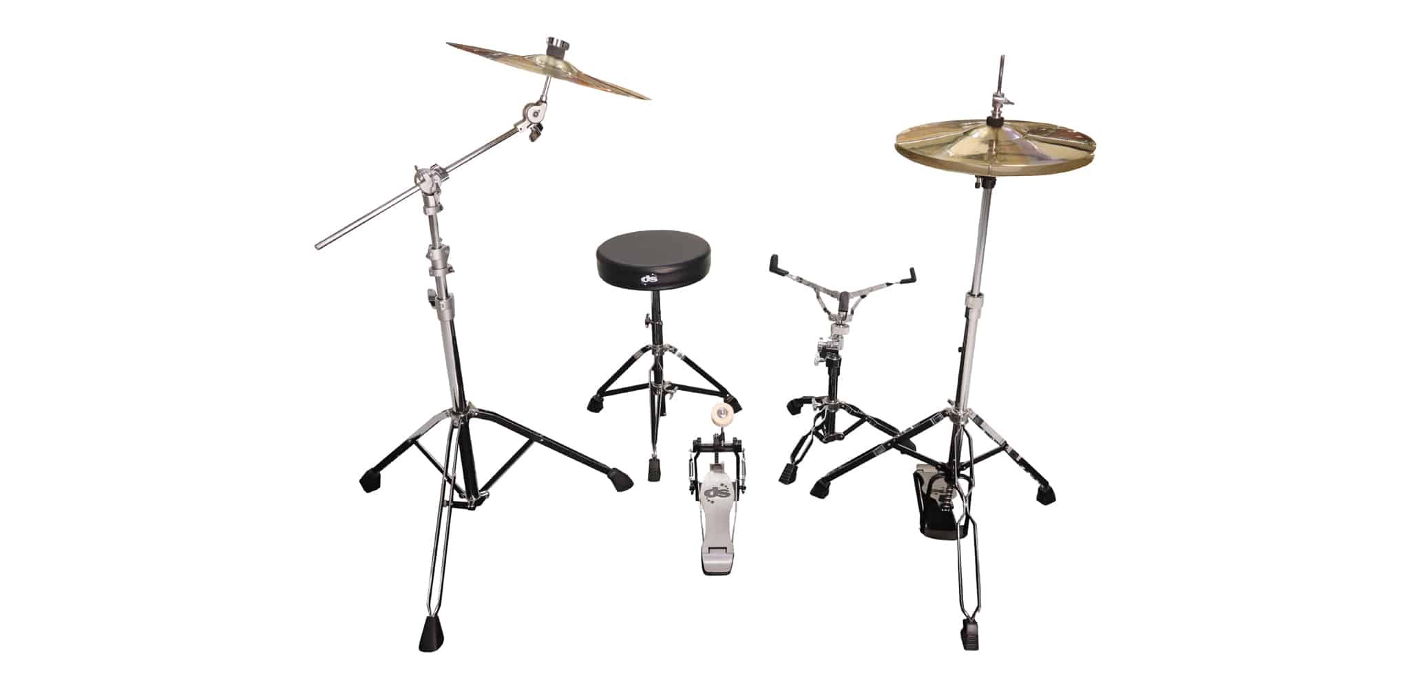 | Hardware | Full set: hi-hat stand, boom cymbal stand, snare stand, kick pedal, drum throne |