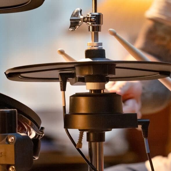 Một điểm đáng tiền của Alesis Nitro Ultimate bộ trống điện tử là phần hi-hat dạng gắn stand kèm bộ điều khiển riêng. Chi tiết này giúp cảm giác chơi hi-hat tự nhiên hơn, mang lại trải nghiệm gần với trống cơ hơn hẳn. Với người chơi đã quen hoặc đang muốn nâng cấp kỹ thuật foot control, đây là lợi thế rất rõ rệt.