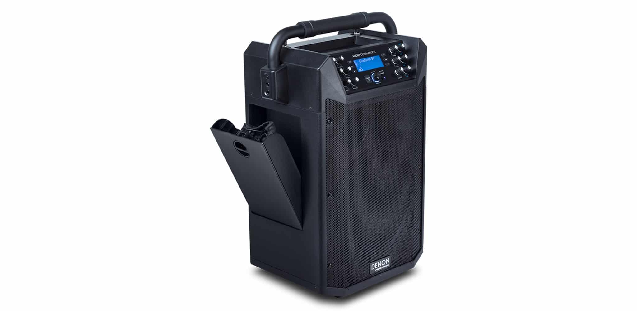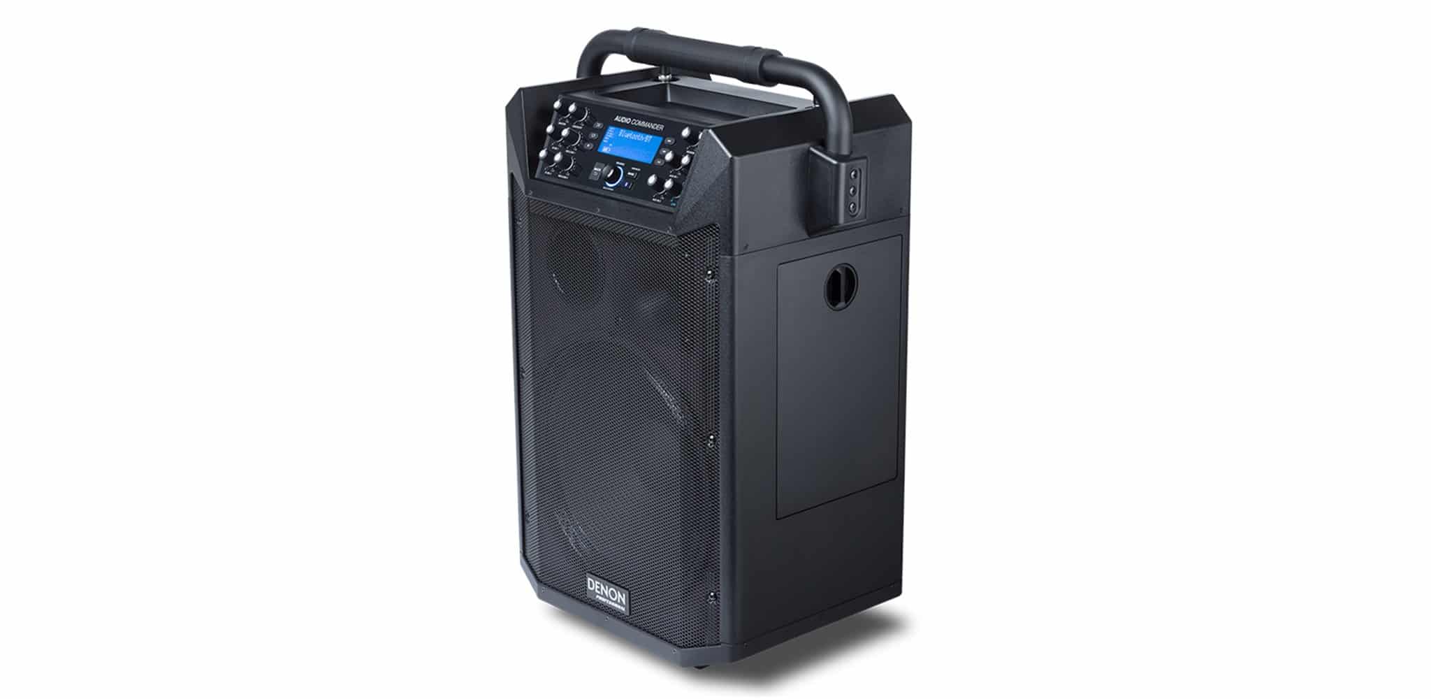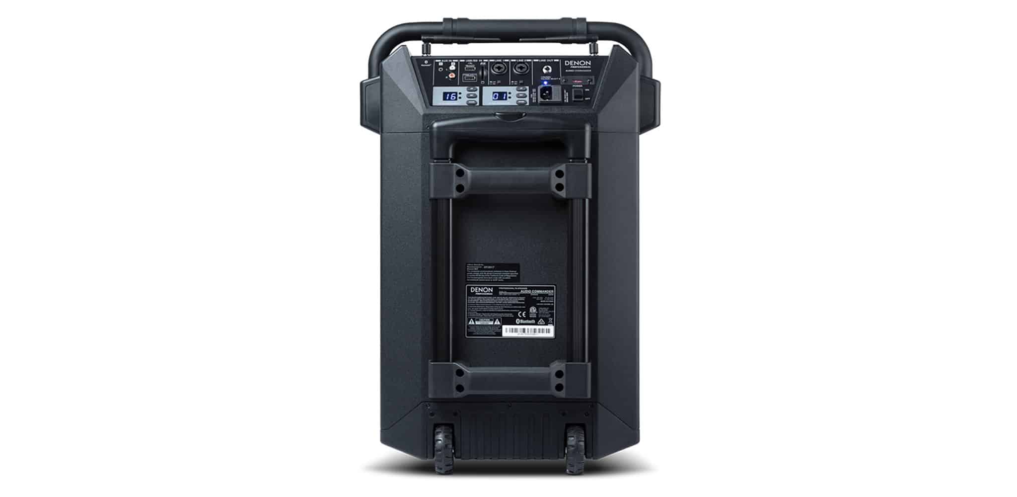 Thiết kế của Denon Audio Commander nổi bật với kiểu dáng vali kéo tiện dụng, bánh xe bền chắc, vỏ bọc gỗ MDF phủ sơn tĩnh điện chống trầy, và vỏ bảo vệ chống nước đi kèm. Không chỉ mạnh mẽ trong hiệu năng, sản phẩm còn mang lại trải nghiệm tiện lợi – người dùng có thể kết nối ngay, bật mic và phát nhạc chỉ trong vài giây. Sự kết hợp giữa độ bền, chất lượng âm thanh, và tính cơ động khiến Denon Audio Commander trở thành giải pháp âm thanh toàn diện cho cá nhân, tổ chức, trường học, hay doanh nghiệp.