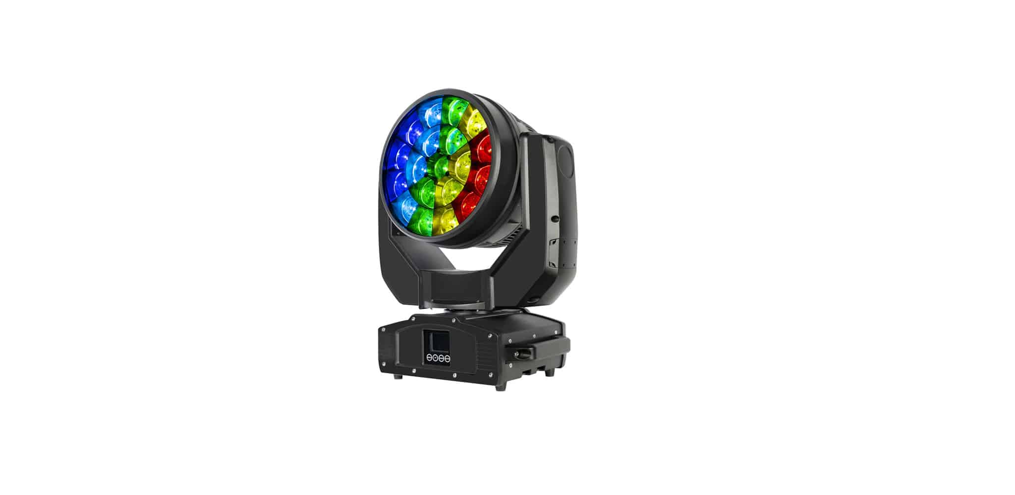 Nguồn sáng 19×40W RGBW – Mang lại độ sáng mạnh, màu sắc rực rỡ và khả năng mixing màu mượt mà giúp sân khấu nổi bật hơn.