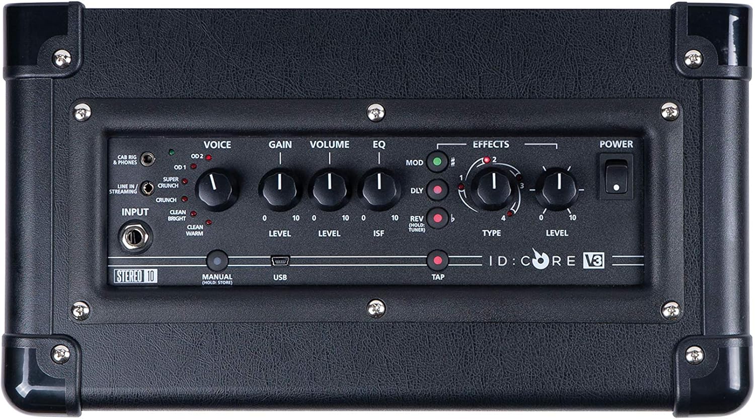✔️ Với công suất 10W (2x5W Super Wide Stereo), Blackstar ID Core 10 V3 phù hợp cho các buổi diễn nhỏ như quán cà phê, phòng trà hoặc biểu diễn trong không gian gia đình. Nếu cần âm lượng lớn hơn, bạn có thể kết nối ampli với hệ thống âm thanh ngoài qua cổng Line Out.