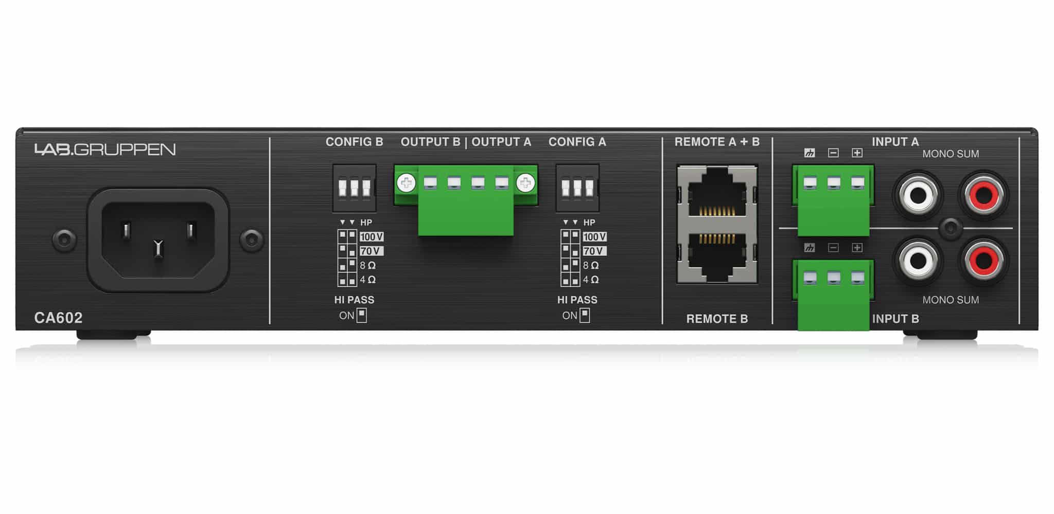 Với đầu vào RCA và Euroblock, Lab Gruppen CA602 có thể kết nối với nhiều loại mixer, đầu phát và thiết bị nguồn khác nhau.