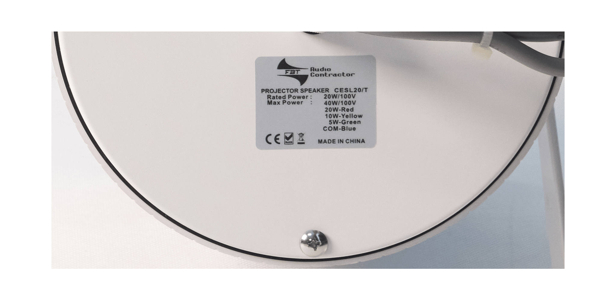 FBT CESL 20T sử dụng biến áp 100V, vì vậy cần kết nối với ampli có ngõ ra 100V hoặc hệ thống PA chuyên dụng. Lựa chọn mức công suất phù hợp (20W – 10W – 5W) bằng cách xoay nút chọn trên biến áp của loa, giúp điều chỉnh âm lượng theo không gian sử dụng.