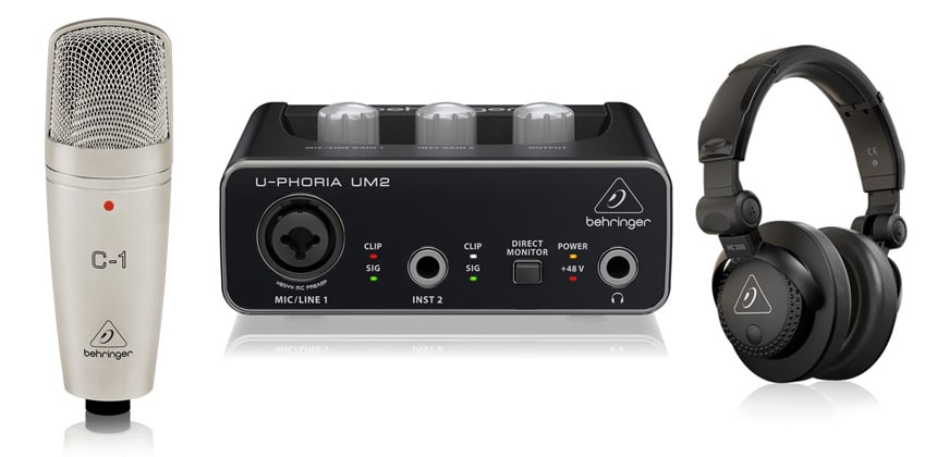 2️⃣ Soundcard Behringer UM2 chất lượng cao: Thiết bị cung cấp khả năng thu âm chuẩn 48kHz, hỗ trợ Phantom 48V cho micro condenser và có độ trễ cực thấp, đảm bảo tín hiệu âm thanh ra vào mượt mà.