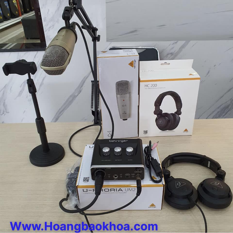 Khi mở hộp, hãy đảm bảo các linh kiện sau đều đầy đủ: soundcard UM2, micro C-1, tai nghe HC 200, dây tín hiệu XLR, dây livestream, giá đỡ micro và giá đỡ điện thoại. Việc kiểm tra kỹ giúp bạn tránh thiếu thiết bị hoặc cắm sai cổng kết nối khi bắt đầu.