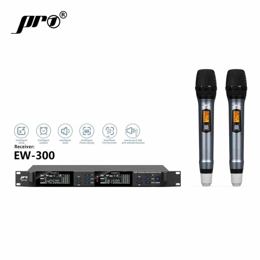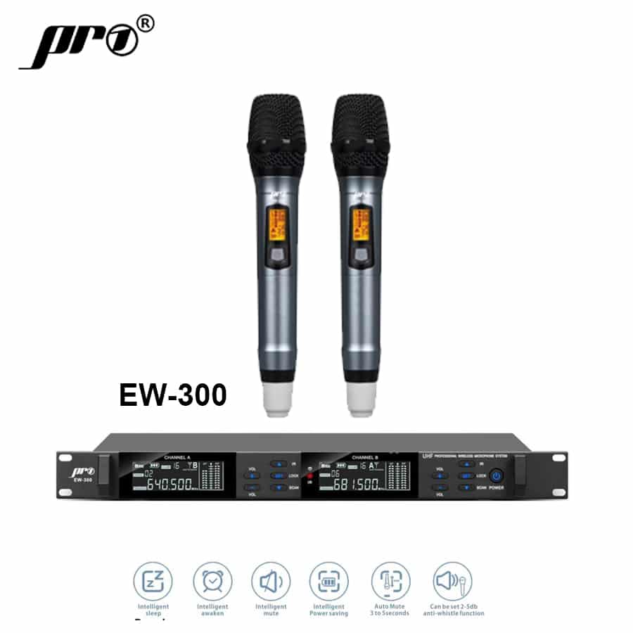 EW 300 Micro Không Dây Cầm Tay 4 Ăng Ten Bộ 2 Micro PRO 1 mang lại trải nghiệm thực tế thuyết phục, đáp ứng tốt nhu cầu hát karaoke, biểu diễn và sử dụng chuyên nghiệp lâu dài.