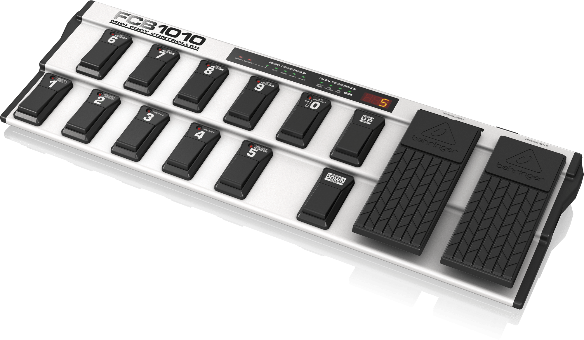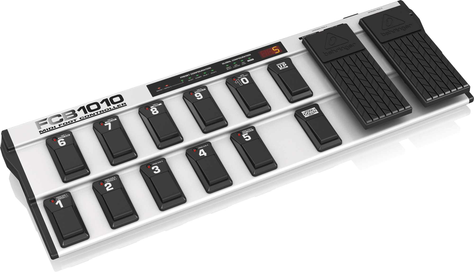 Hai bàn đạp expression trên FCB1010 giúp bạn điều khiển âm lượng, wah, pitch hoặc bất kỳ tham số MIDI nào trong thời gian thực, mang lại trải nghiệm âm nhạc mượt mà và chủ động hơn khi chơi. -