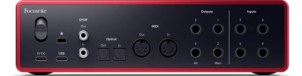 Focusrite Scarlett 16i16 (4th Gen) hỗ trợ cổng MIDI I/O, giúp kết nối với các thiết bị MIDI như bàn phím, bộ điều khiển hoặc thiết bị âm thanh số khác. Điều này mở ra khả năng mở rộng mạnh mẽ cho người dùng trong việc điều khiển và phối hợp nhiều thiết bị trong cùng một hệ thống. -