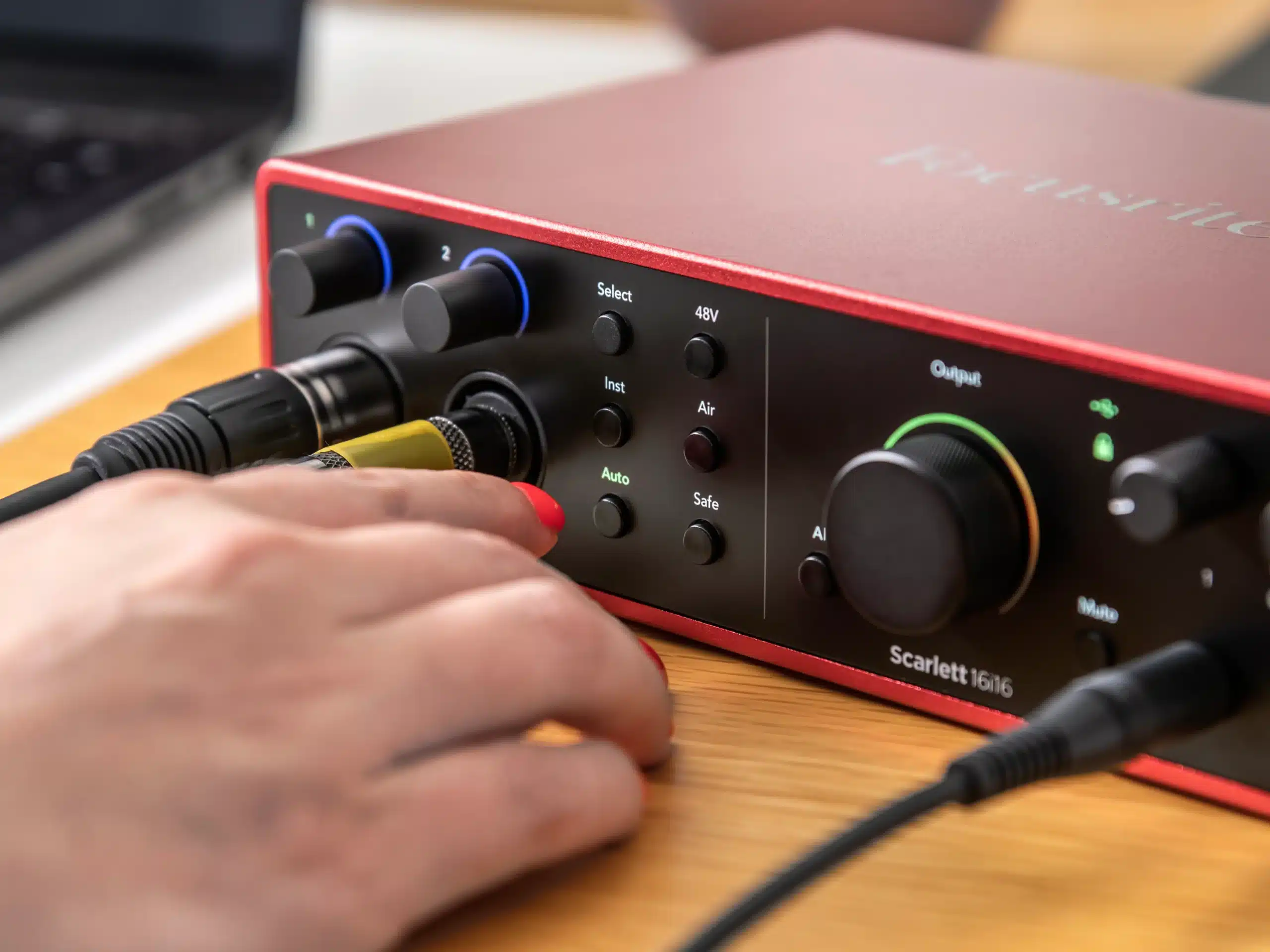 Điều chỉnh mức gain của các preamps thông qua phần mềm Focusrite Control hoặc trên mặt trước của Focusrite Scarlett 16i16 (4th Gen). Nếu cần âm thanh sáng rõ, hãy bật chế độ AIR để mô phỏng âm thanh của preamp ISA.