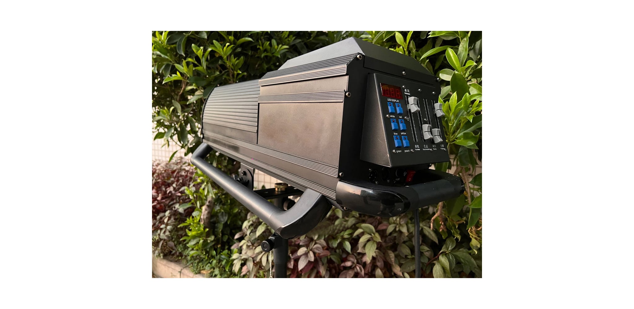 Đèn hỗ trợ DMX512 tiêu chuẩn quốc tế và có thể điều khiển thủ công trực tiếp trên thân đèn.