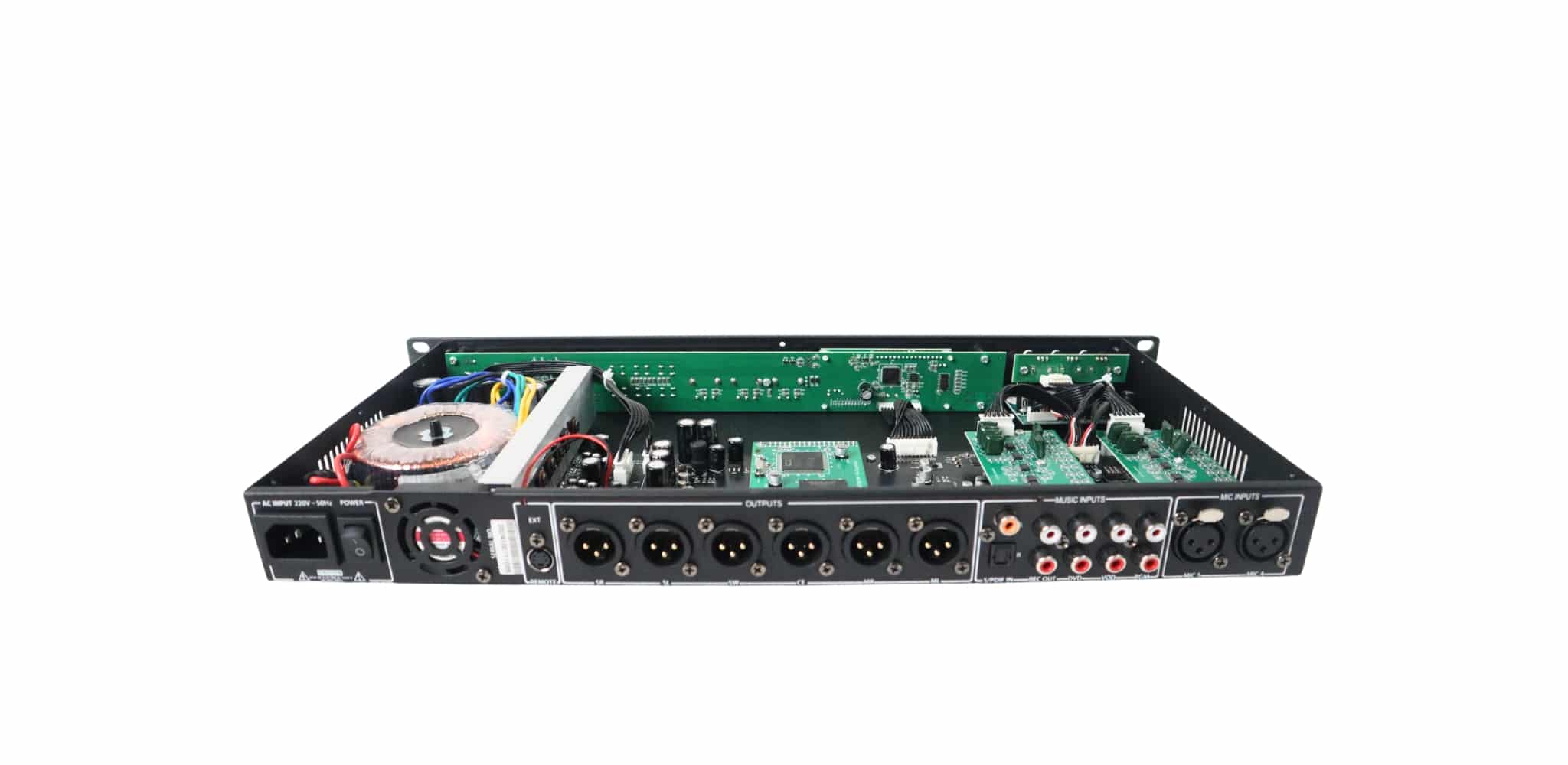 Trong môi trường kinh doanh karaoke, HBK SOUND DX-6100S – Vang Số thể hiện rõ sức mạnh nhờ độ ổn định cao, khả năng chống hú đa cấp và sự linh hoạt của 8 kênh đầu ra độc lập. Thiết bị dễ dàng phối ghép với loa full, loa sub hoặc hệ thống 5.1, 7.1, giúp chủ quán tối ưu không gian và cấu hình âm thanh theo từng phòng hát. Ngoài ra, thiết bị còn hỗ trợ kết nối với các nguồn phát digital như TV box, đầu karaoke chuyên dụng, smart TV, đảm bảo chất âm sạch, ít nhiễu và độ chi tiết cao. HBK SOUND DX-6100S – Vang Số cũng là lựa chọn lý tưởng cho các không gian như phòng họp, sự kiện nhỏ, phòng thu mini, nơi cần một bộ xử lý âm thanh có độ chính xác và sự ổn định cao.