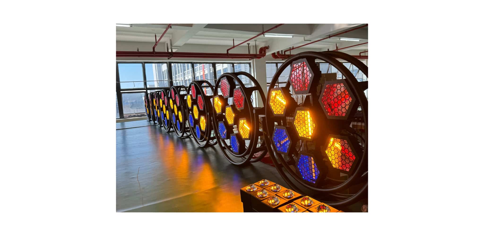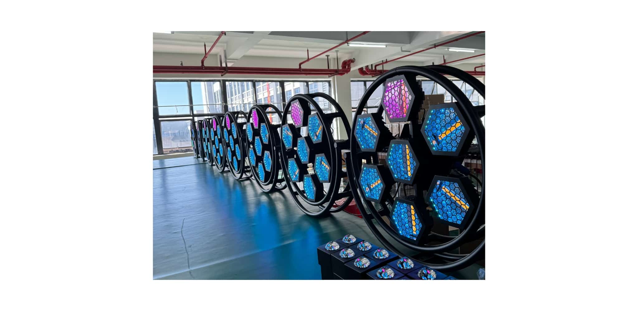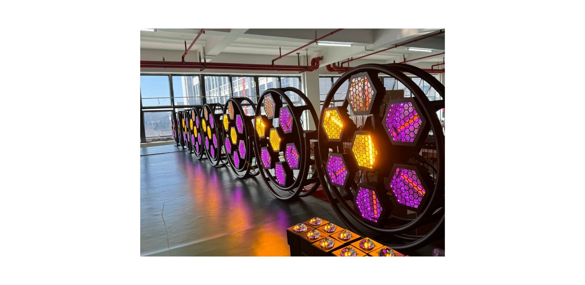 Thiết kế lục giác độc đáo giúp tạo điểm nhấn mạnh mẽ trên sân khấu, góp phần tăng hiệu ứng thị giác và thẩm mỹ cho tổng thể setup ánh sáng.