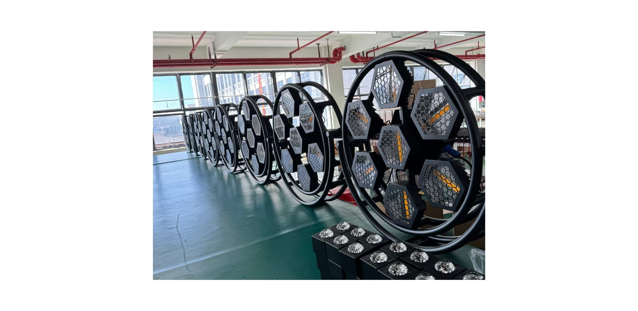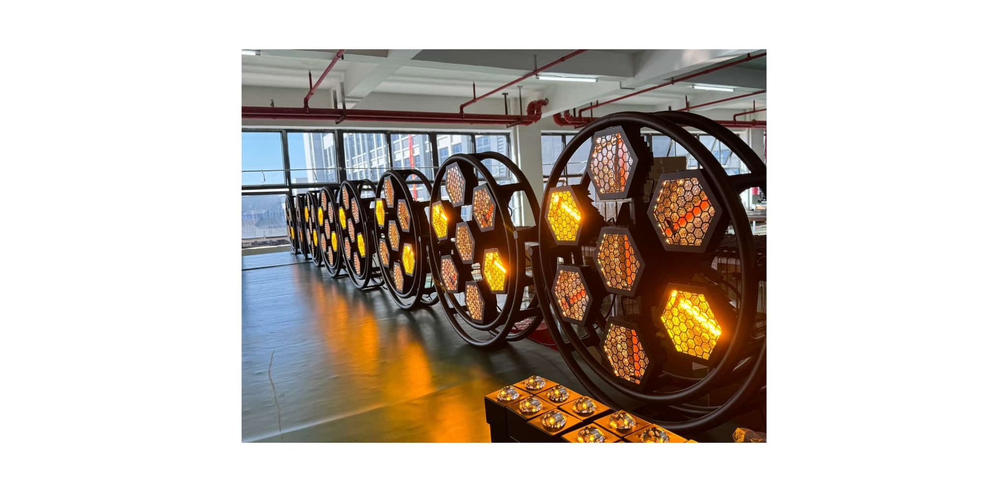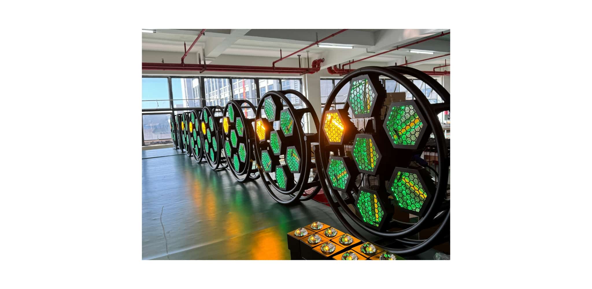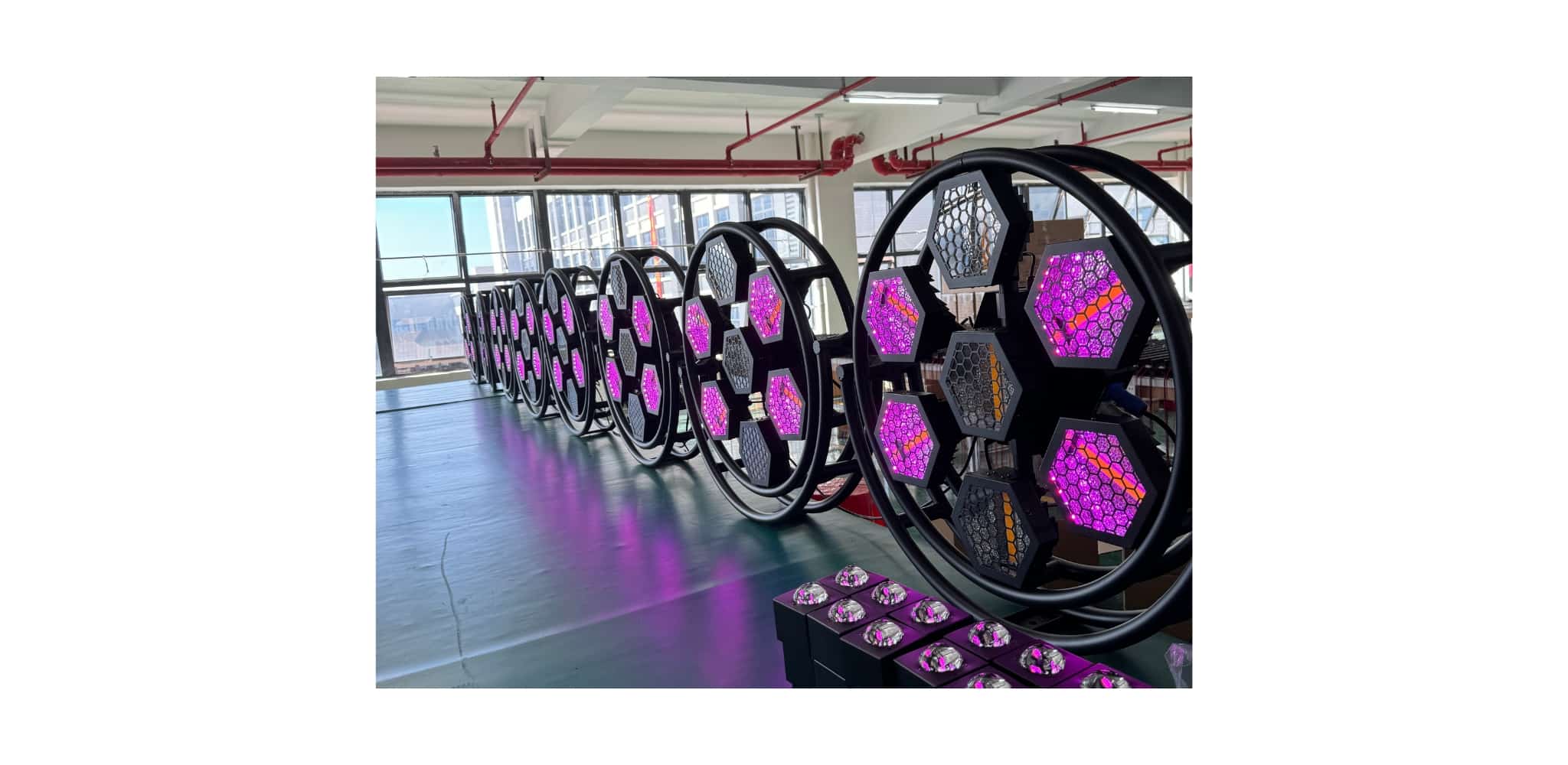 Thiết kế lục giác độc đáo giúp tạo điểm nhấn mạnh mẽ trên sân khấu, góp phần tăng hiệu ứng thị giác và thẩm mỹ cho tổng thể setup ánh sáng.