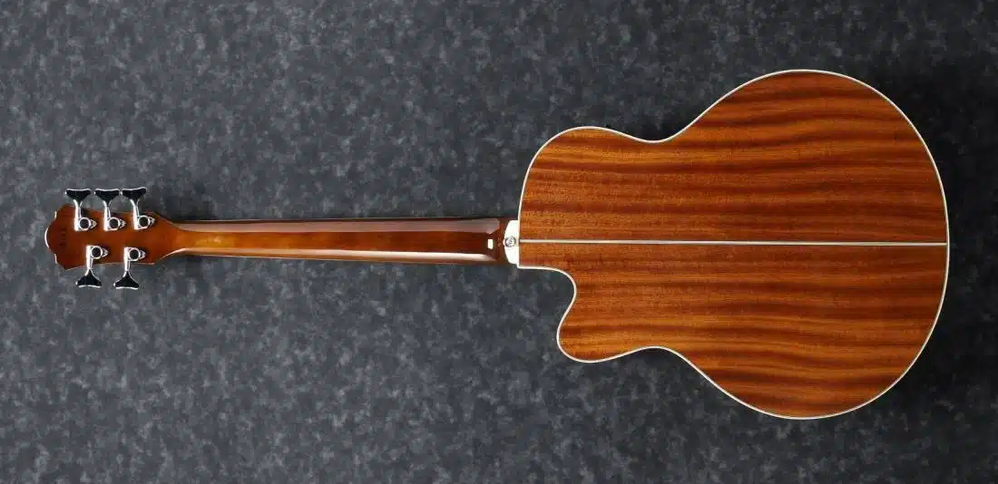 🎶 Về cấu hình gỗ, Ibanez AEB105E-NT bass acoustic 5 dây có EQ cắm ampli sử dụng mặt top Spruce kết hợp với lưng và hông Sapele. Sự kết hợp này tạo nên chất âm khá cân bằng giữa độ rõ của dải cao, độ ấm của dải trung và nền low-end chắc chắn cần thiết cho bass. Đối với người chơi acoustic ensemble, worship, café acoustic, band bán điện hoặc singer-songwriter cần một cây bass mộc đa năng, đây là một cấu hình rất thực dụng và hiệu quả.