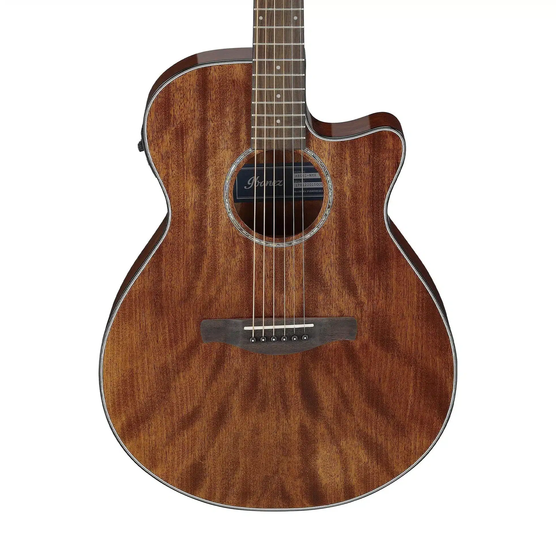 Ibanez AEG61-NMH guitar acoustic-electric Natural Mahogany có tuner sử dụng cấu trúc thân mỏng giúp giảm cộng hưởng dư thừa, tập trung âm thanh rõ ràng và kiểm soát tốt khi khuếch đại. Gỗ Okoume tạo dải âm trung ấm áp, dễ nghe, phù hợp nhiều thể loại nhạc.