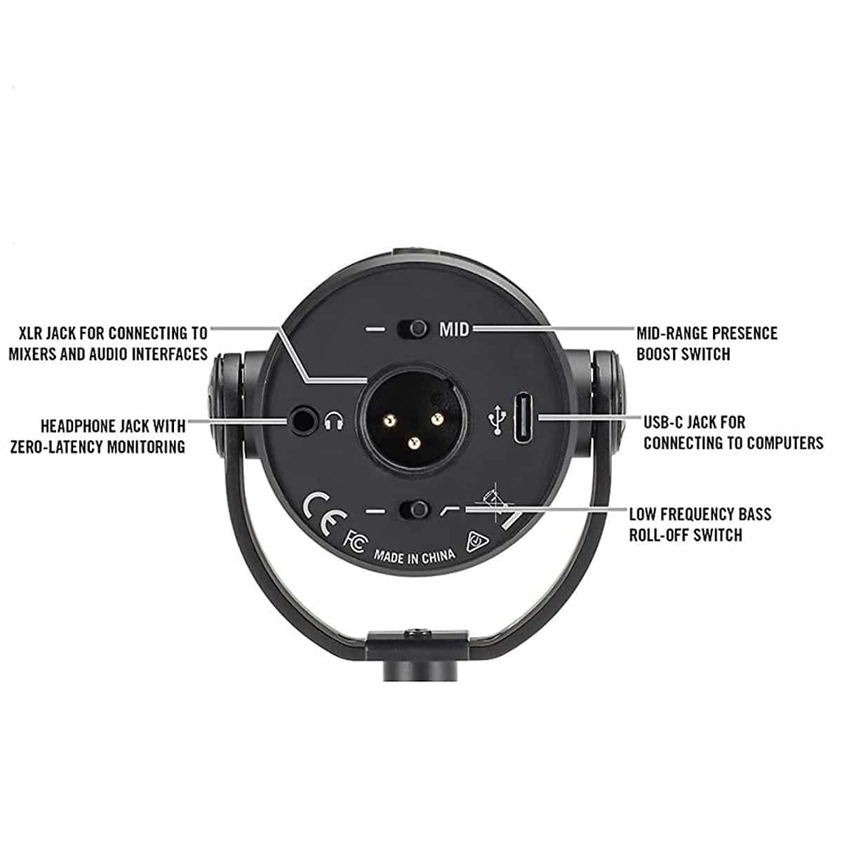 Micro được tích hợp bộ lọc Low Cut giúp loại bỏ các tần số thấp không mong muốn, như tiếng ồn của quạt hay tiếng rung từ bàn. Tính năng Mid Presence Boost giúp tăng cường âm trung, làm nổi bật giọng nói trong quá trình phát thanh hoặc podcast. -