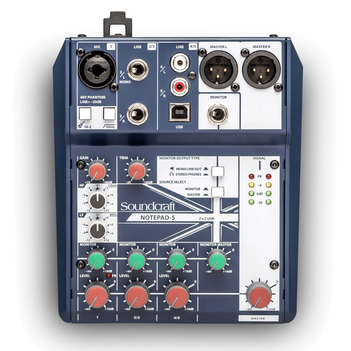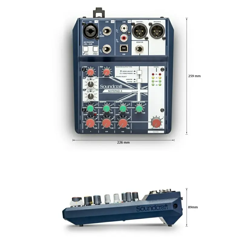 Thiết kế nhỏ gọn tiện lợi giúp Soundcraft Notepad 5 dễ dàng mang đi biểu diễn, thu âm di động hoặc sử dụng tại nhà.