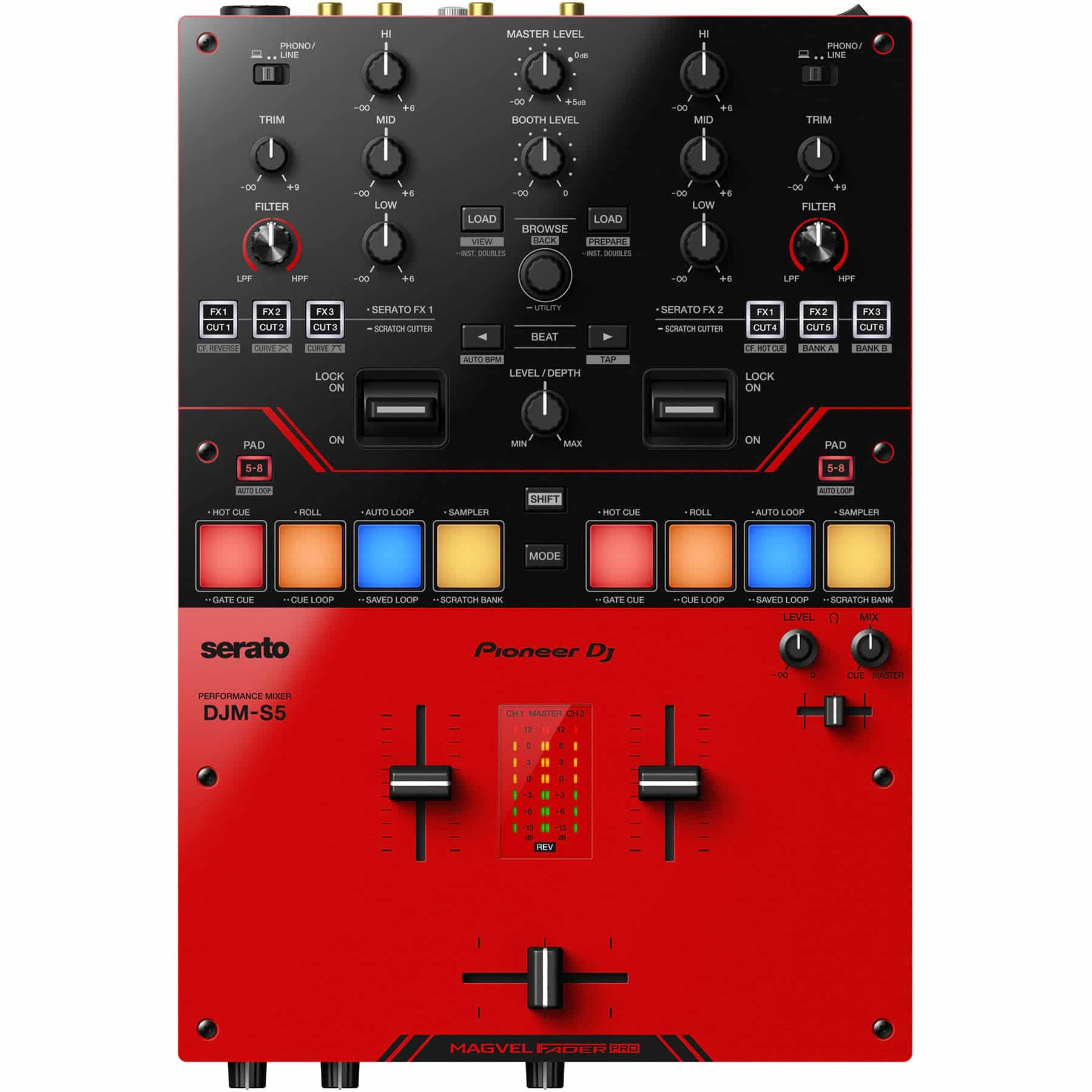 MIXER DJ PIONEER DJ DJM-S5 được trang bị MAGVEL FADER PRO mang lại cảm giác cắt cực kỳ chính xác, độ nảy cao, phù hợp cho scratch liên tục và kỹ thuật phức tạp, giúp DJ kiểm soát tuyệt đối từng chuyển động tay.