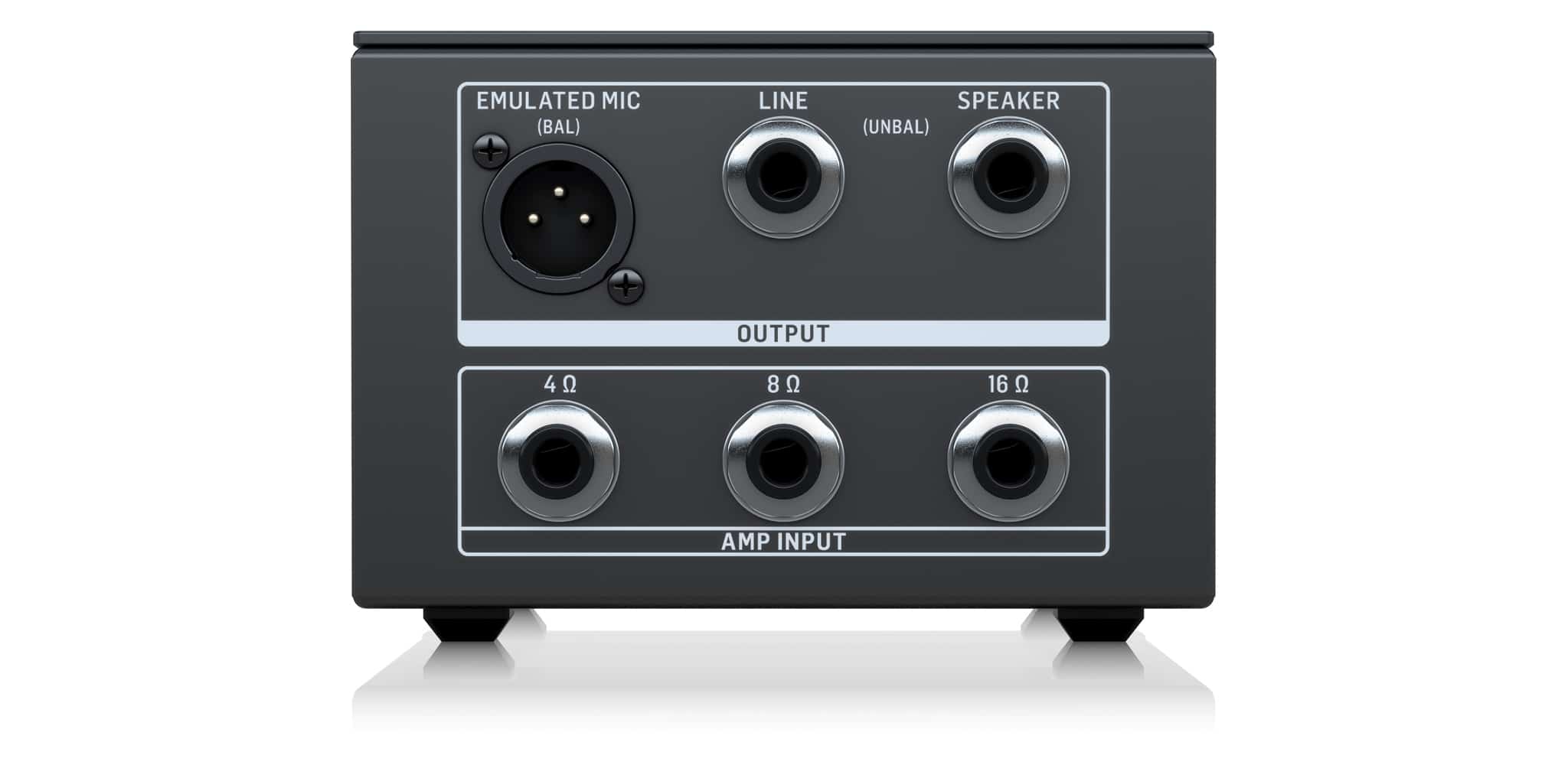 Cổng XLR Emulated Mic Output – mô phỏng chính xác âm thanh micro trước loa, mang lại trải nghiệm thu âm chân thực mà không cần set-up micro.