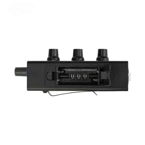 Tiếp theo, kết nối tai nghe hoặc in-ear monitor vào cổng 1/8” TRS của PX-A. Điều chỉnh các nút volume tương ứng cho từng kênh để tạo ra bản mix cá nhân theo ý muốn. Với mỗi kênh, bạn có thể kiểm soát panning bằng DIP switch bên trong khoang pin, cho phép đặt tín hiệu về trái, phải hoặc giữ ở giữa nhằm tạo không gian stereo tự nhiên và dễ phân biệt hơn.
