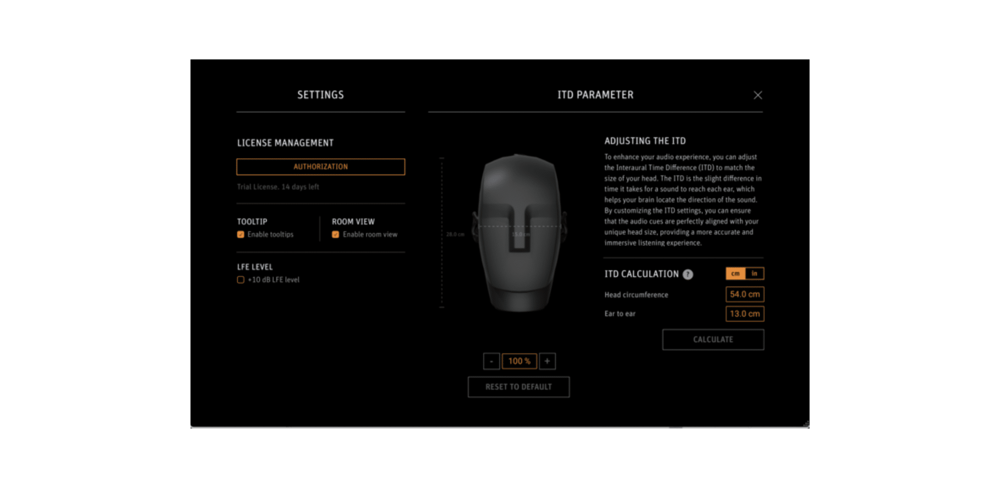 Điều chỉnh thông số ITD (Interaural Time Difference) cho phù hợp với kích thước đầu và cảm nhận không gian của bạn.