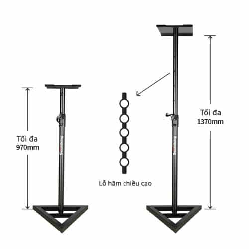 Khả năng chịu tải khoảng 15 kg mỗi chân phù hợp cho loa monitor, loa kiểm âm và loa sân khấu cỡ vừa.