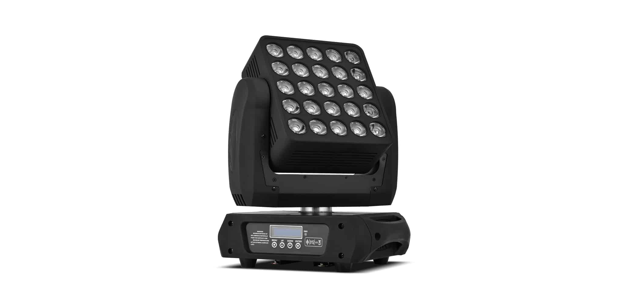 Nguồn sáng: 25 bóng LED CREE RGBW 4-in-1 15 W – xác định loại và số lượng LED, cho biết ánh sáng mạnh mẽ và khả năng phối màu đa dạng, giúp người dùng đảm bảo hiệu suất ánh sáng cao và linh hoạt.