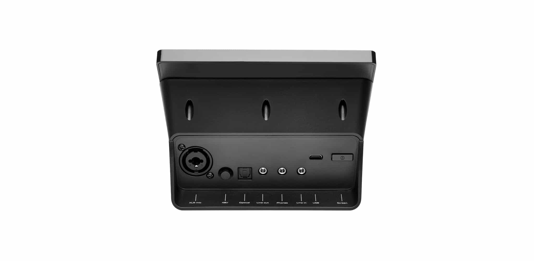 8️⃣ Ngõ vào/ra đa dạng – Bao gồm XLR/Line-in, Optical TOSLINK, Line-out và cổng tai nghe 3.5mm giúp kết nối linh hoạt với nhiều thiết bị khác nhau.