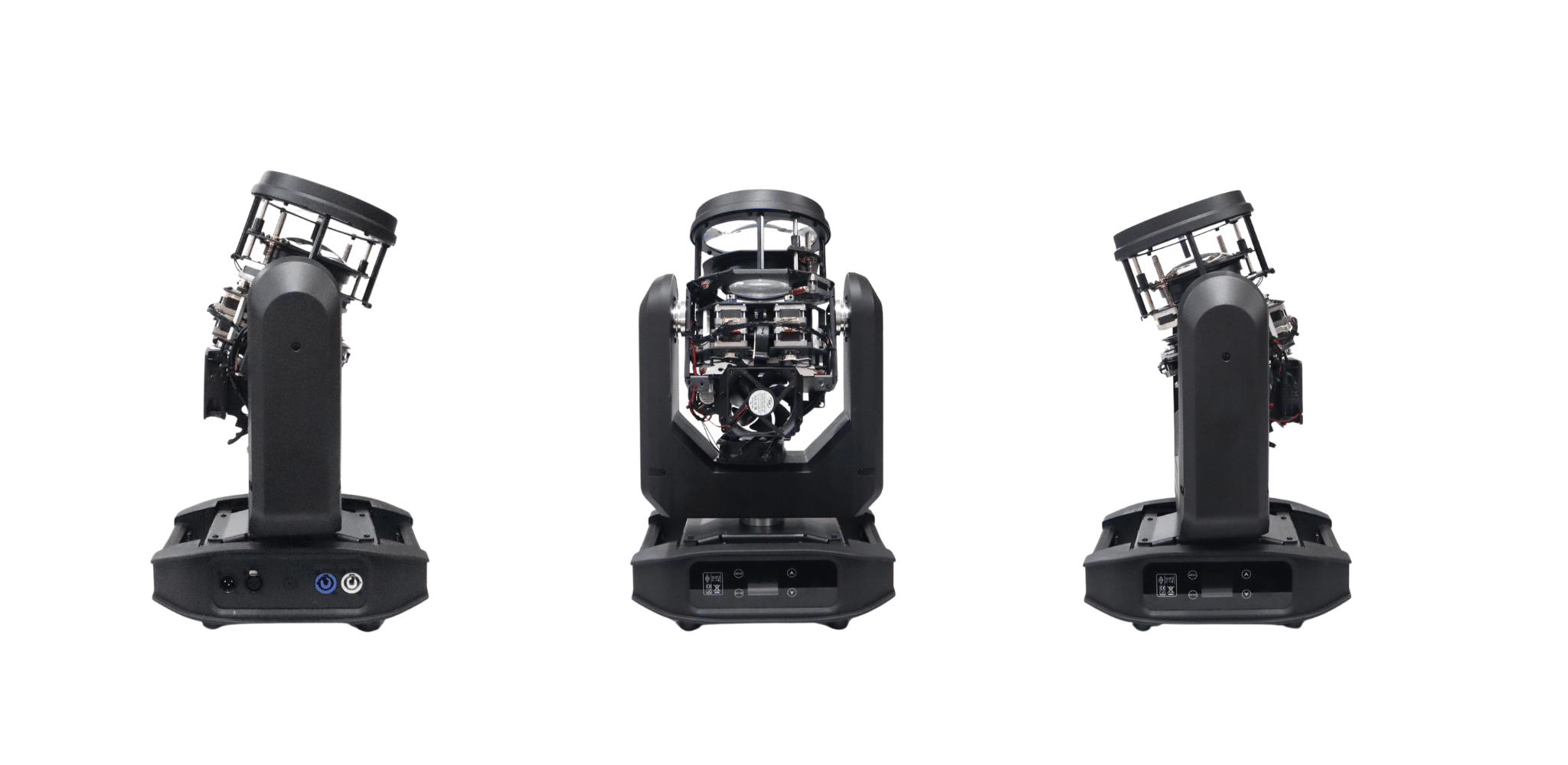 Khả năng xoay rộng giúp quét ánh sáng toàn bộ không gian, hỗ trợ kỹ thuật viên sáng tạo hiệu ứng chuyển động sống động và mạnh mẽ.