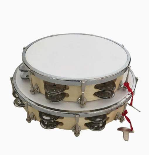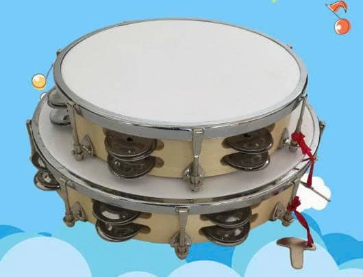 Trống lắc tay 10 inch 2 hàng chuông gỗ ép mặt nhựa trắng có dùng được trong lớp học âm nhạc không