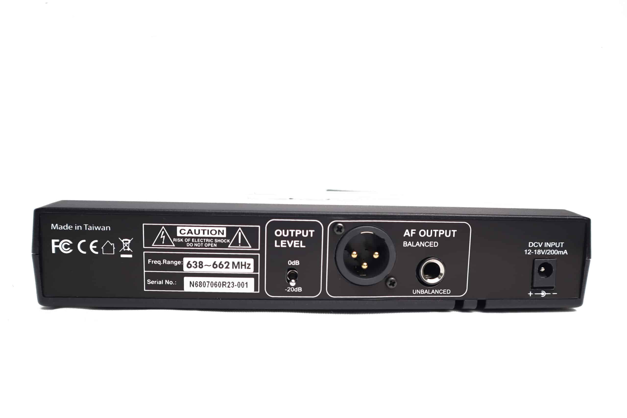 Nguồn hoạt động linh hoạt 12–18 V DC cho bộ thu và pin AAA cho bộ phát – thuận tiện, dễ thay thế, hoạt động bền bỉ.