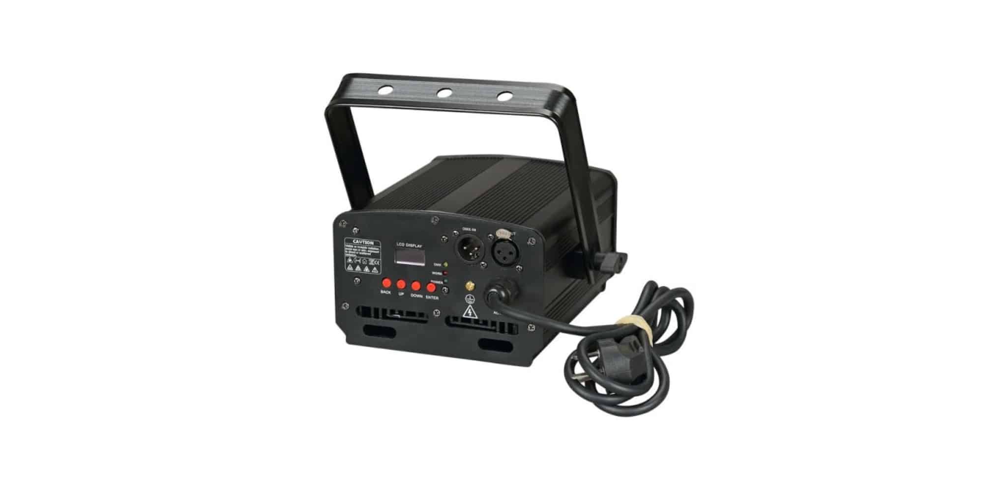 Công suất laser 8W mạnh mẽ giúp tạo ra hiệu ứng điểm sáng rõ nét, phù hợp cho không gian indoor vừa và nhỏ.
